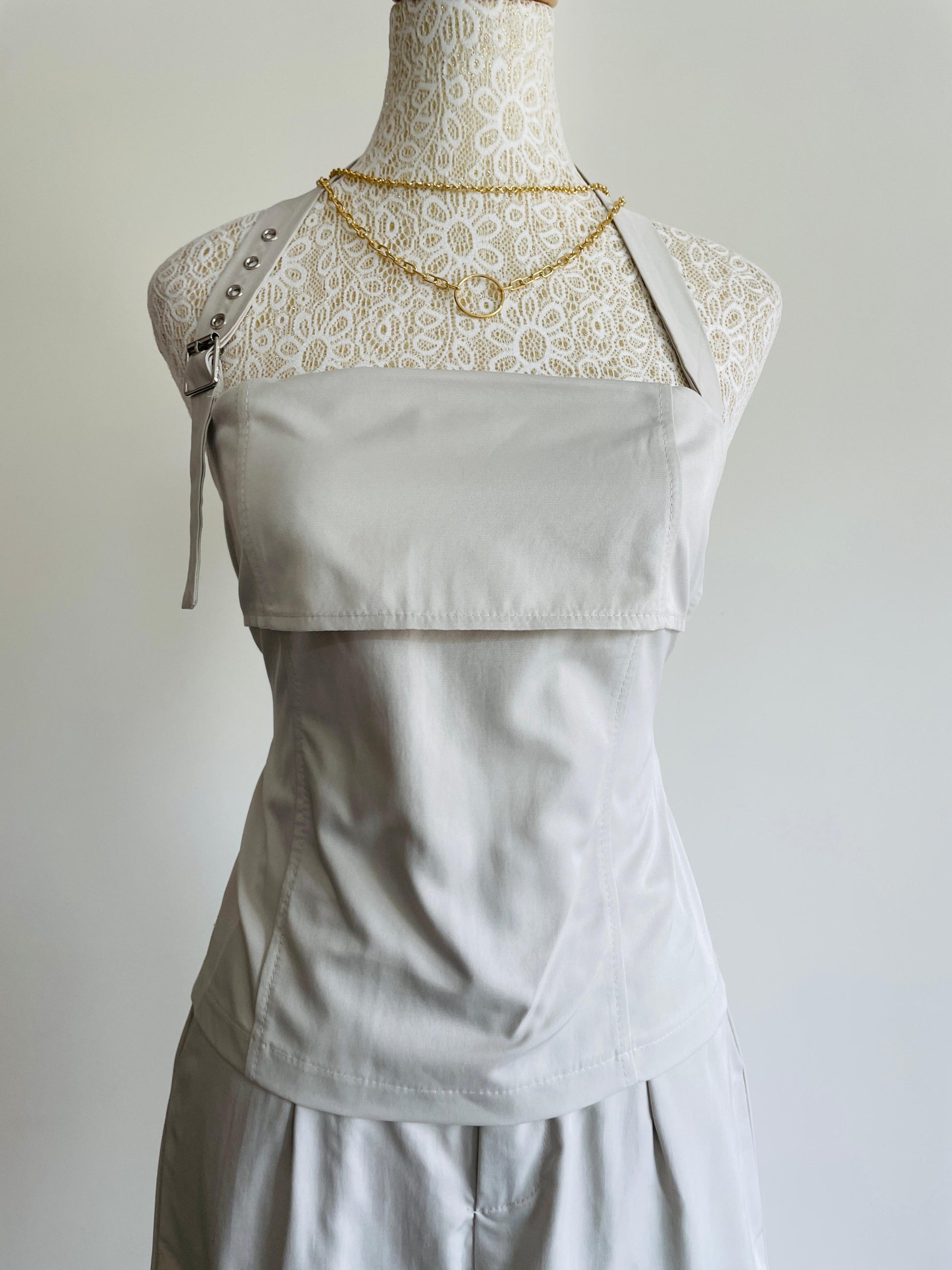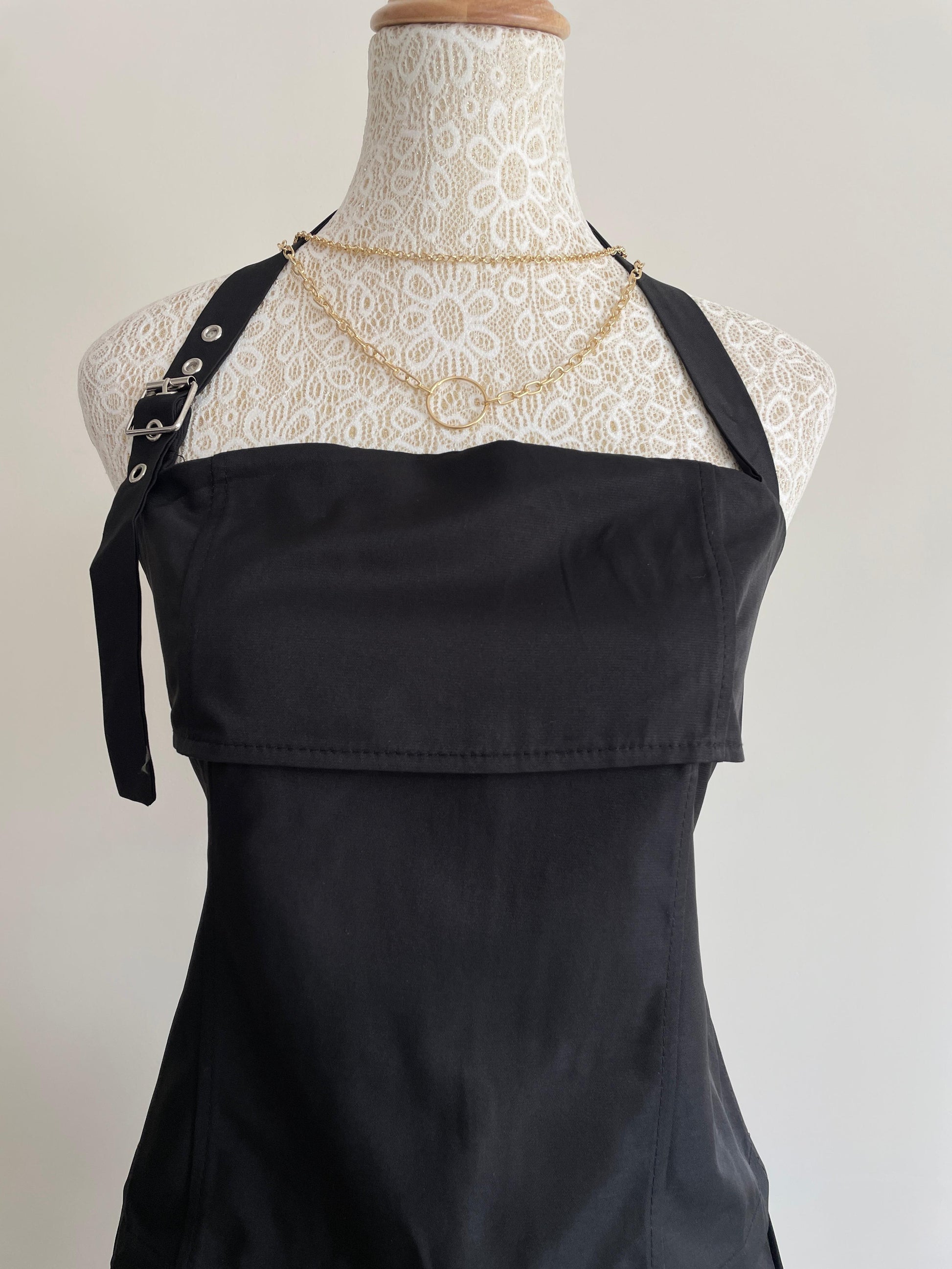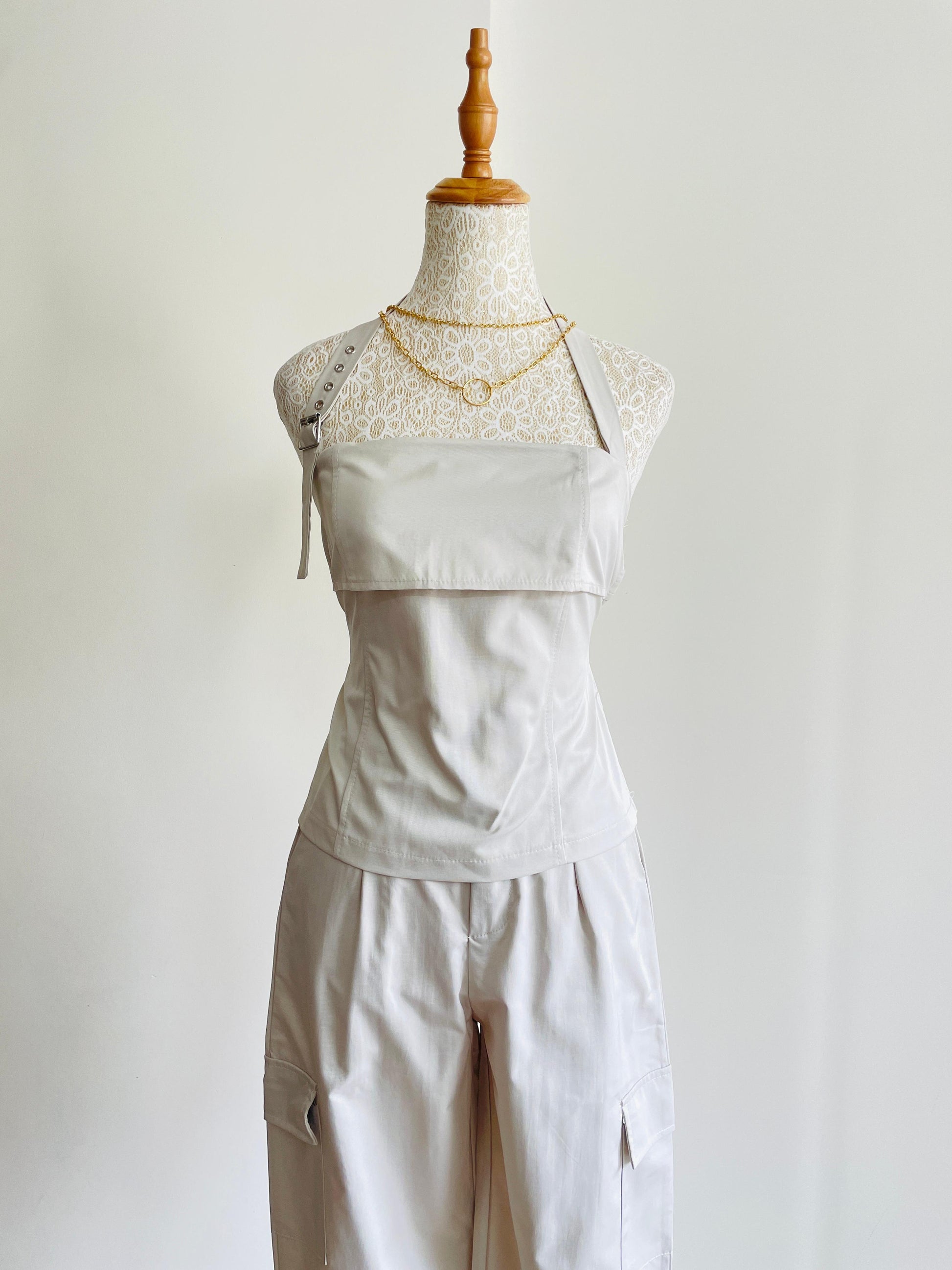 Halter neck top with chic buckle detailing for a bold, feminine statement