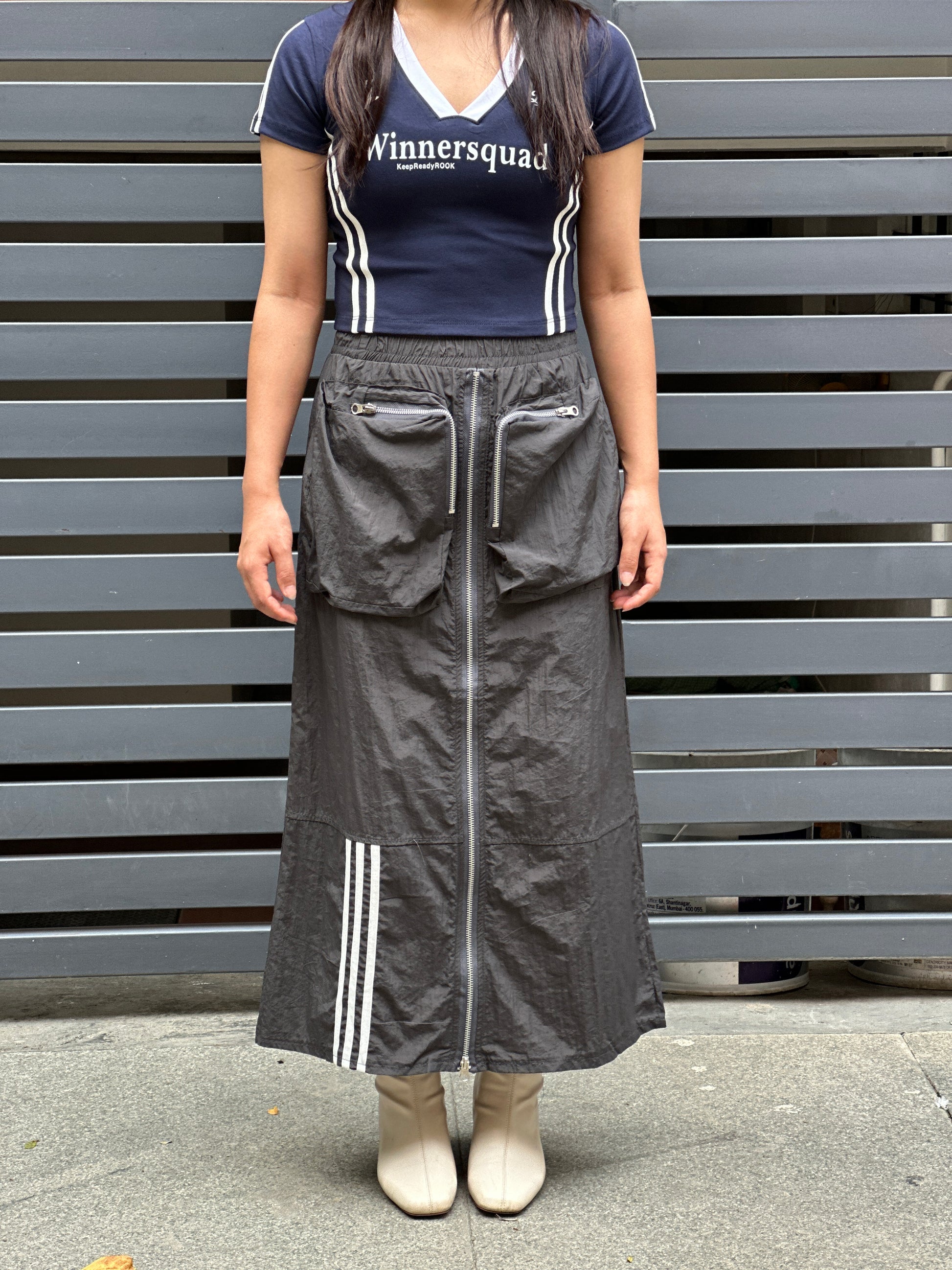 The Cargo Zipper Pocket Skirt features a full-length functional zipper that lets you wear it your way — zipped up sleek or styled open with layers. With two bold front pockets and that unapologetic utility vibe, it's made to turn heads and carry confidence.