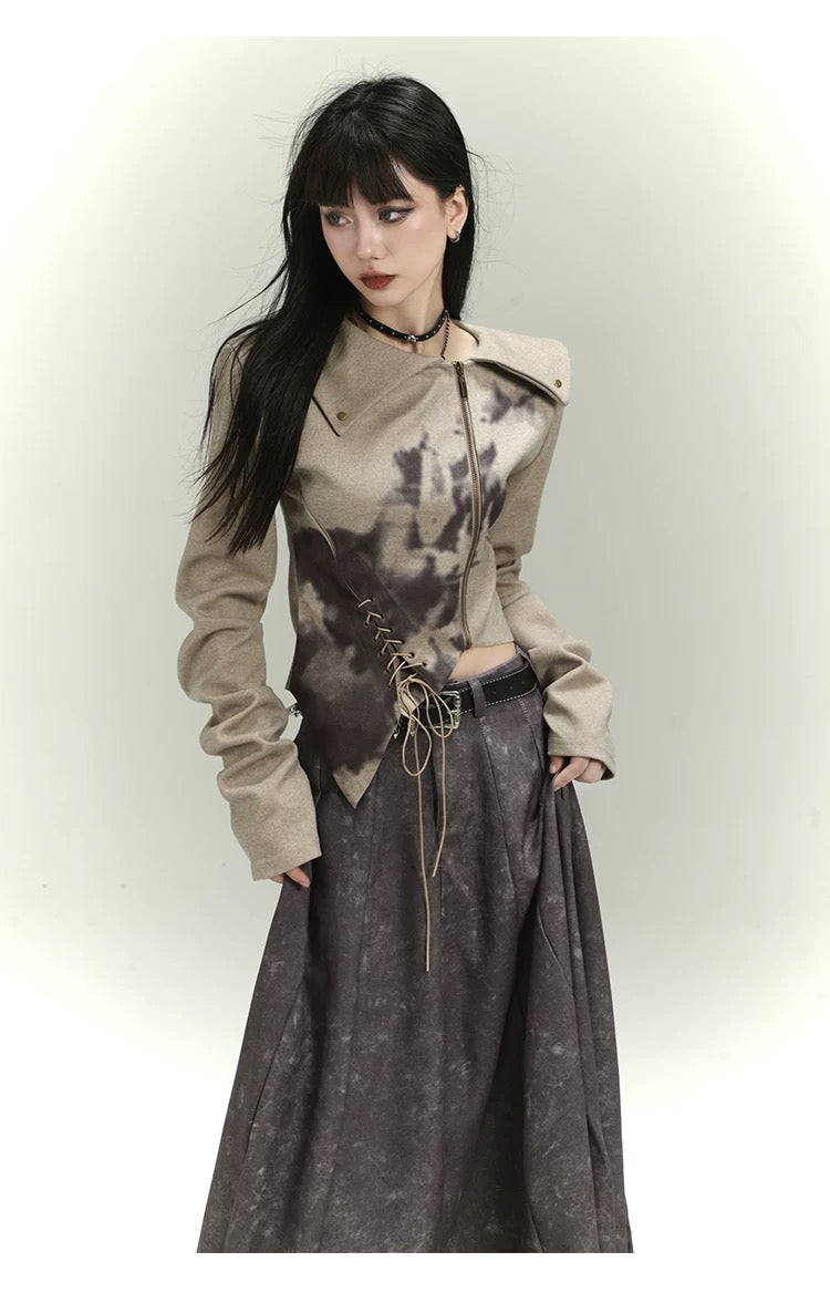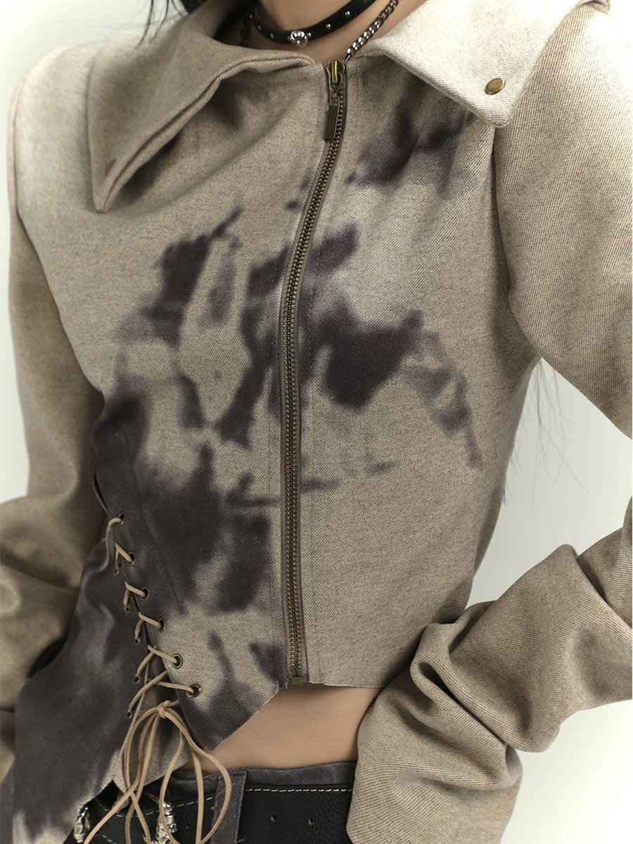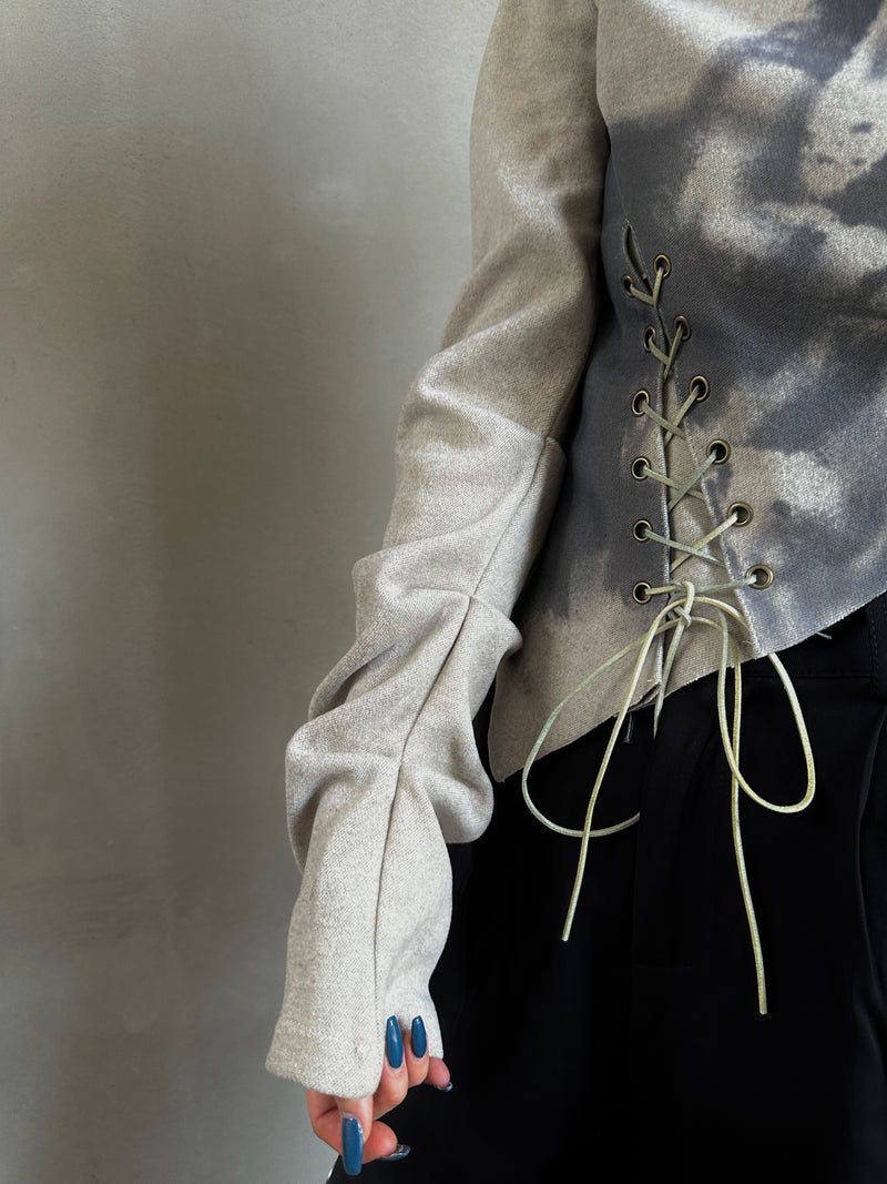 This zip-up top features corset-inspired side lacing and an oversized collar for a modern feminine edge. Lightweight and statement-making without trying too hard.
