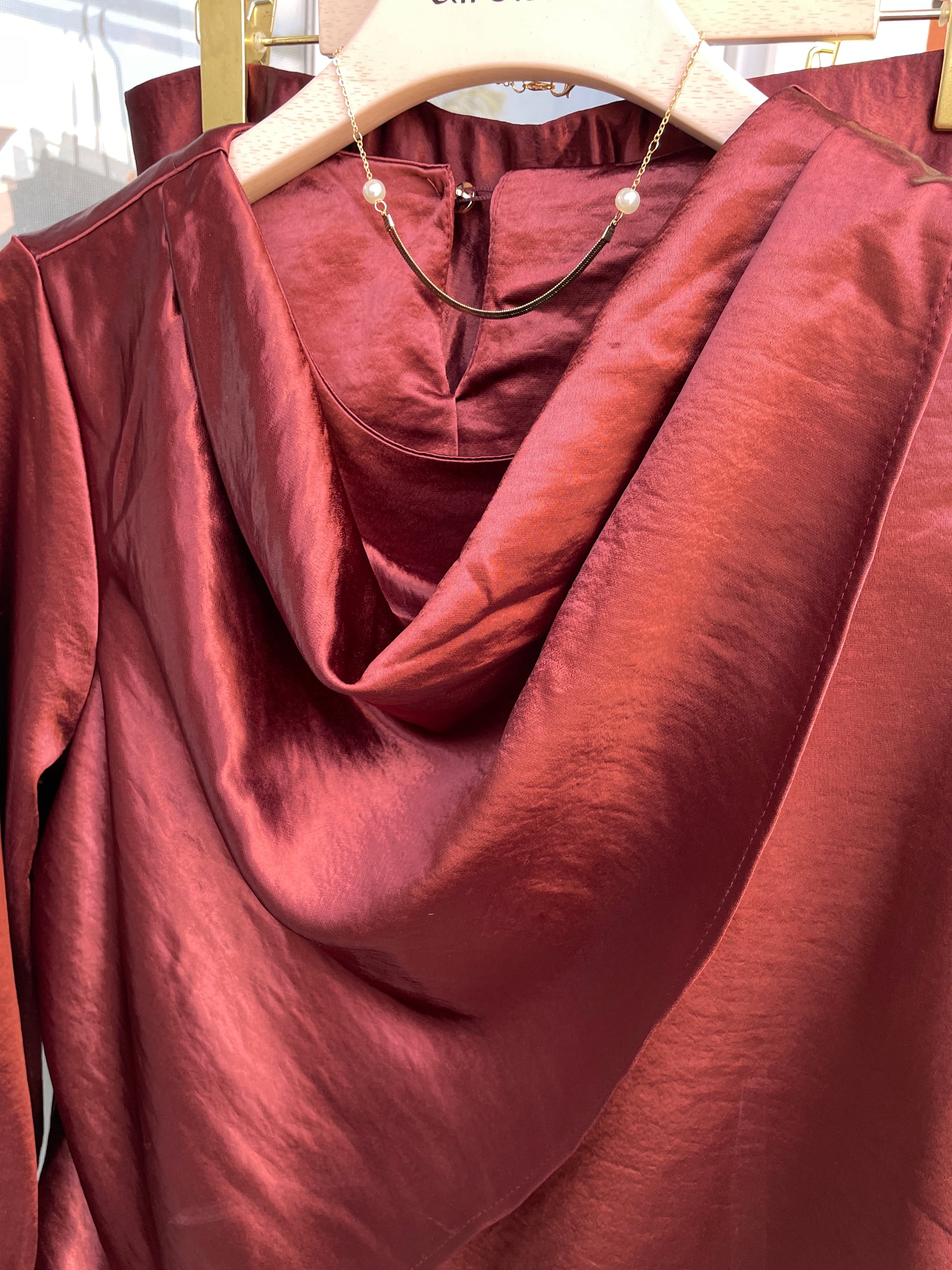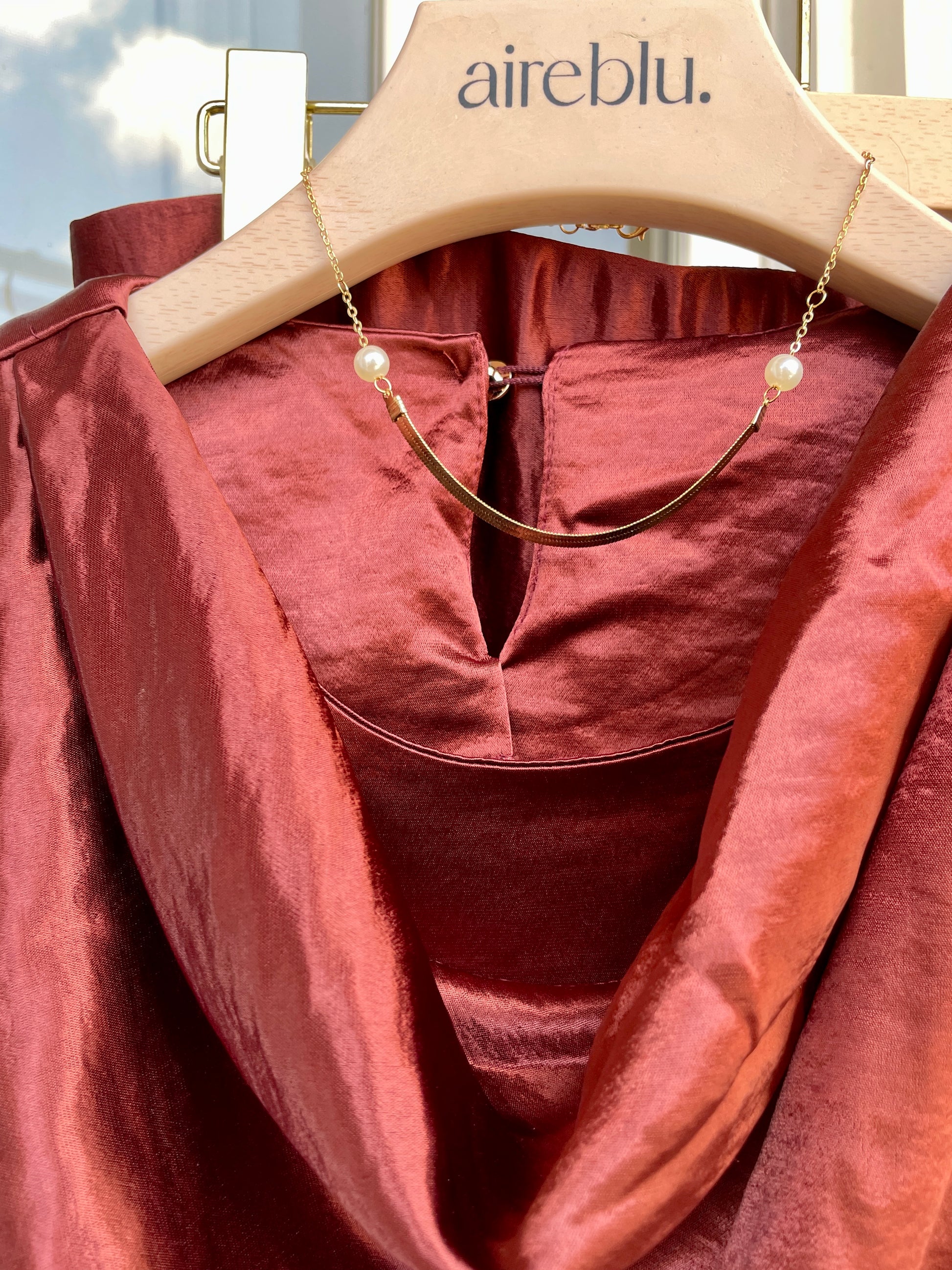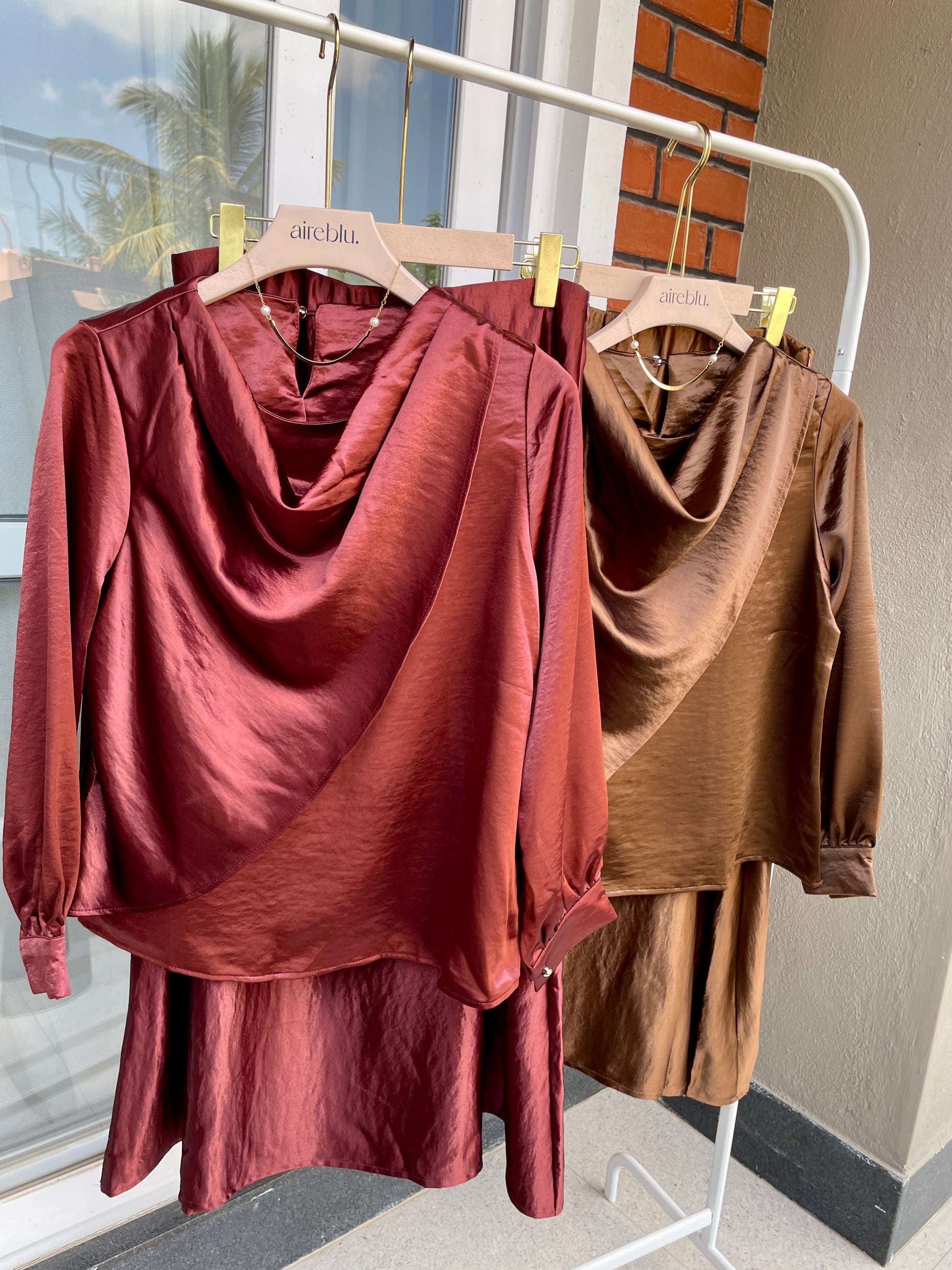 A timeless silhouette crafted in luxurious satin, the Daphne Coordset is the perfect blend of elegance and ease. Featuring a graceful cowl neck top paired with a flowing satin skirt, this set offers full coverage without hugging the body—making it ideal for modest wear lovers. With its fluid drape and elevated finish, Daphne brings softness, structure, and sophistication in every step.