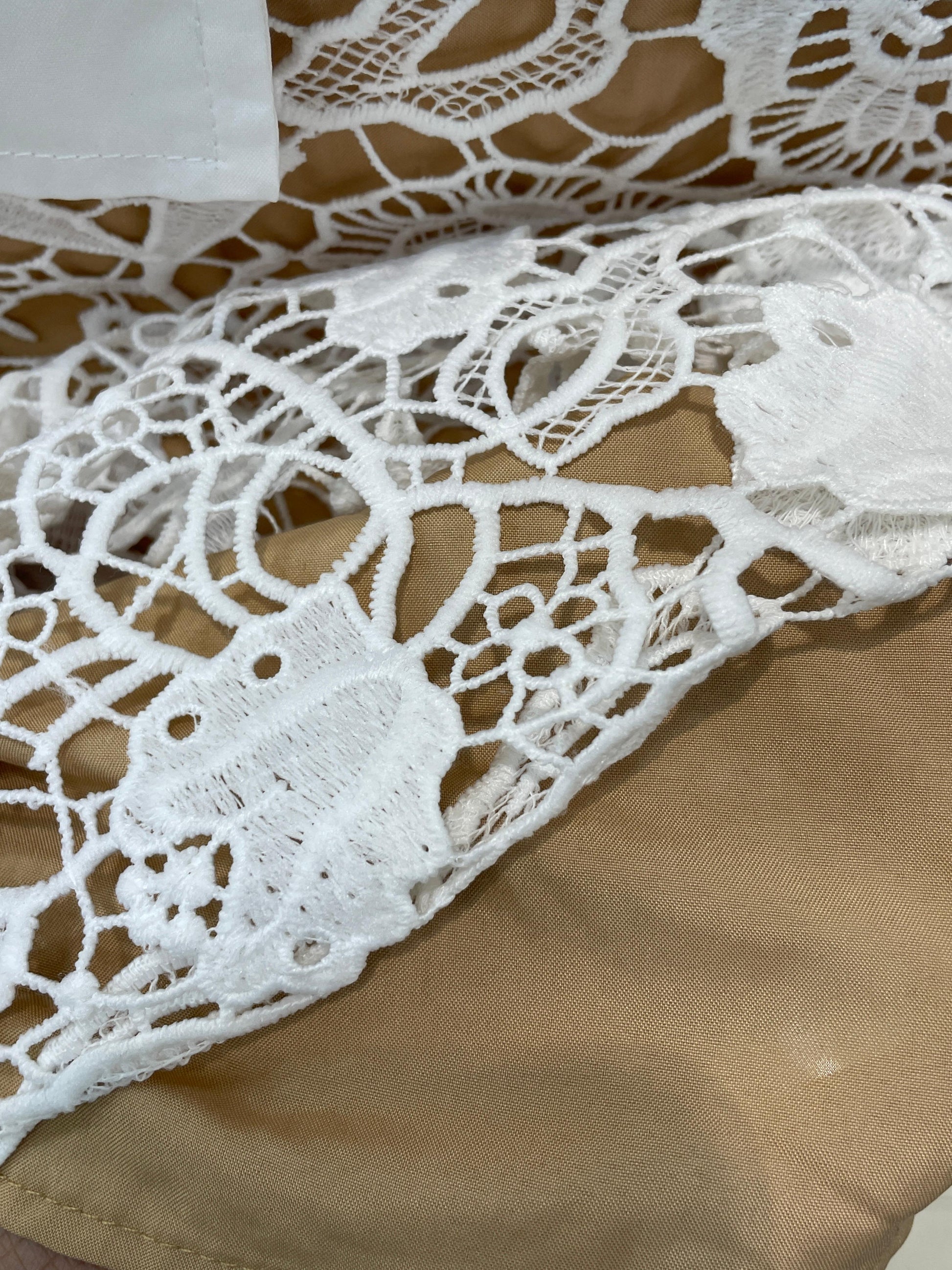 Crafted from premium embroidered lace fabric with a rich brown lining for full coverage