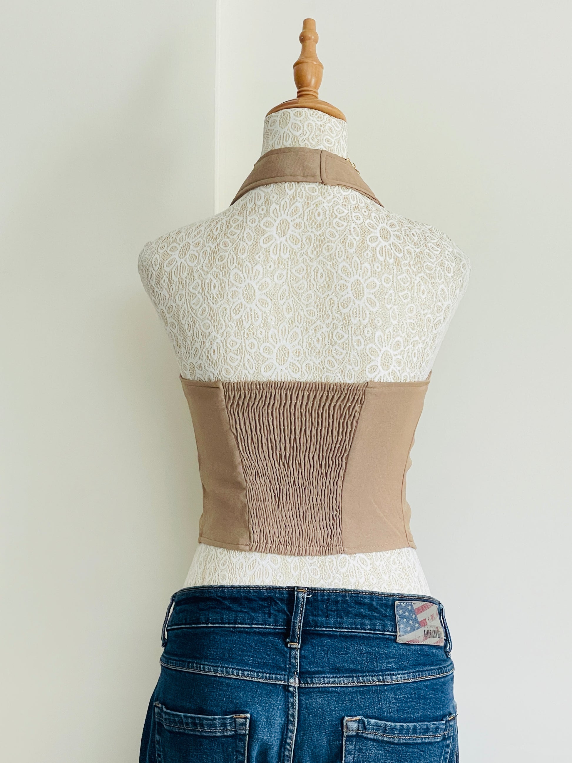 Effortlessly chic in khaki. This halter neck vest features a flattering neckline and a subtle elastic back for added comfort and shape. Designed for minimal yet standout looks, it's the kind of piece that takes you from day to night without trying too hard.