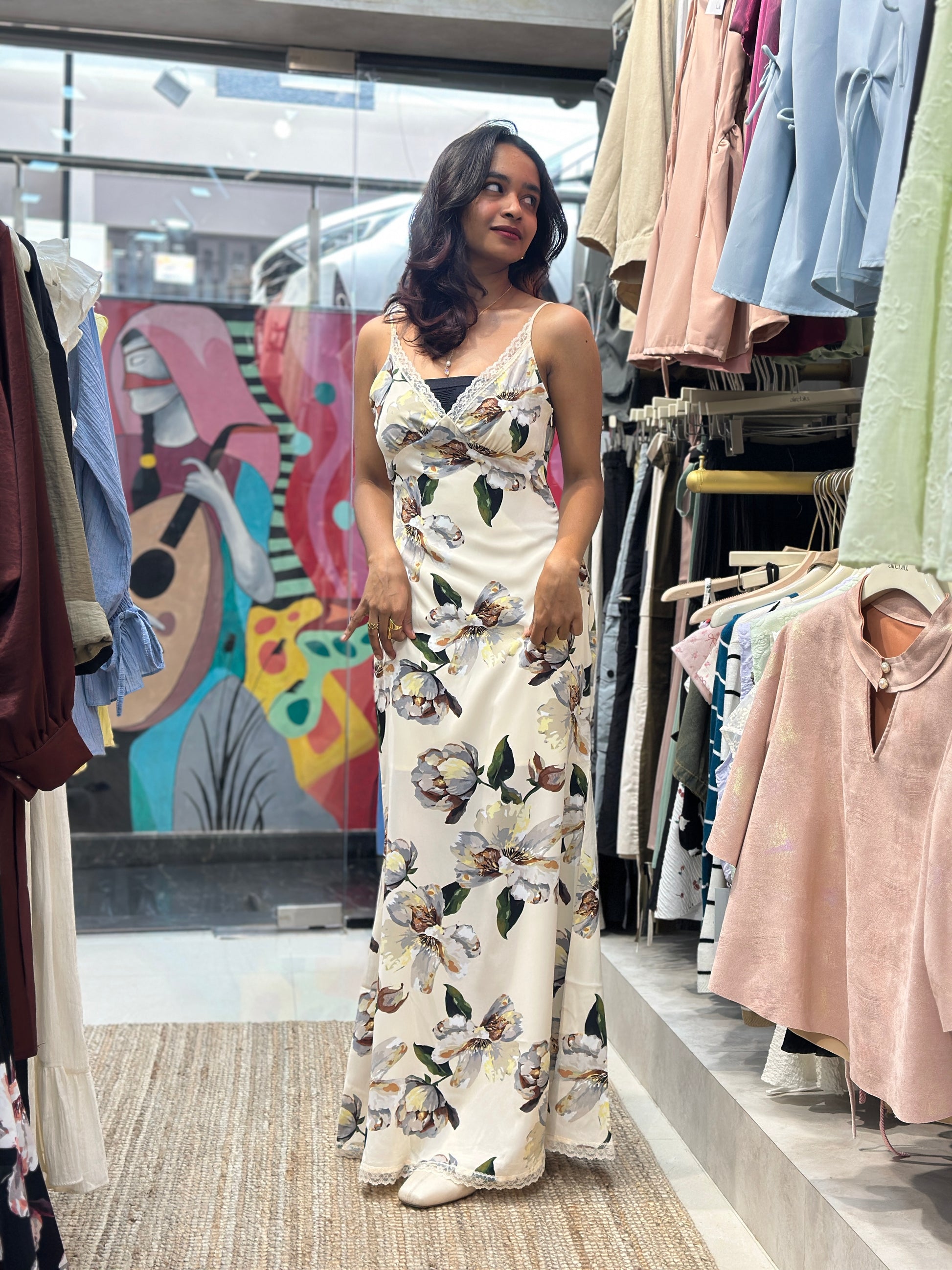 A dreamy floral slip dress made for soft mornings and golden hours.