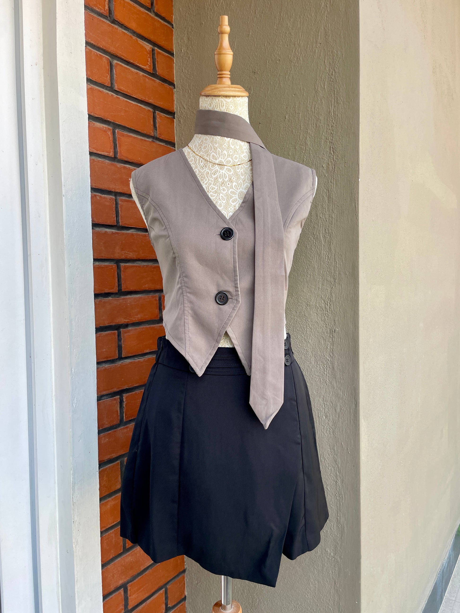 Chic and structured, the Siren Vest is designed to elevate your everyday layering. Featuring a flattering V neckline, a matching tie for added definition, and a sleek silhouette in classic grey — it’s a versatile piece that pairs effortlessly with shirts, dresses, or worn solo. Made in free size, best suited up to bust 35