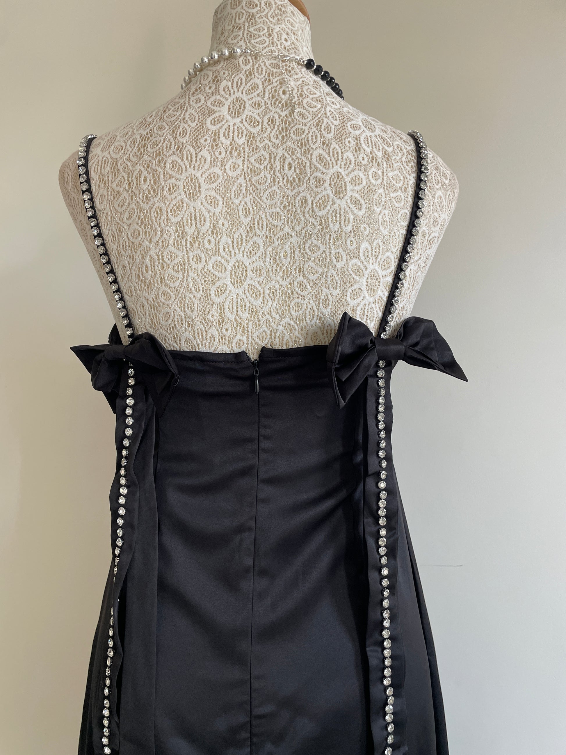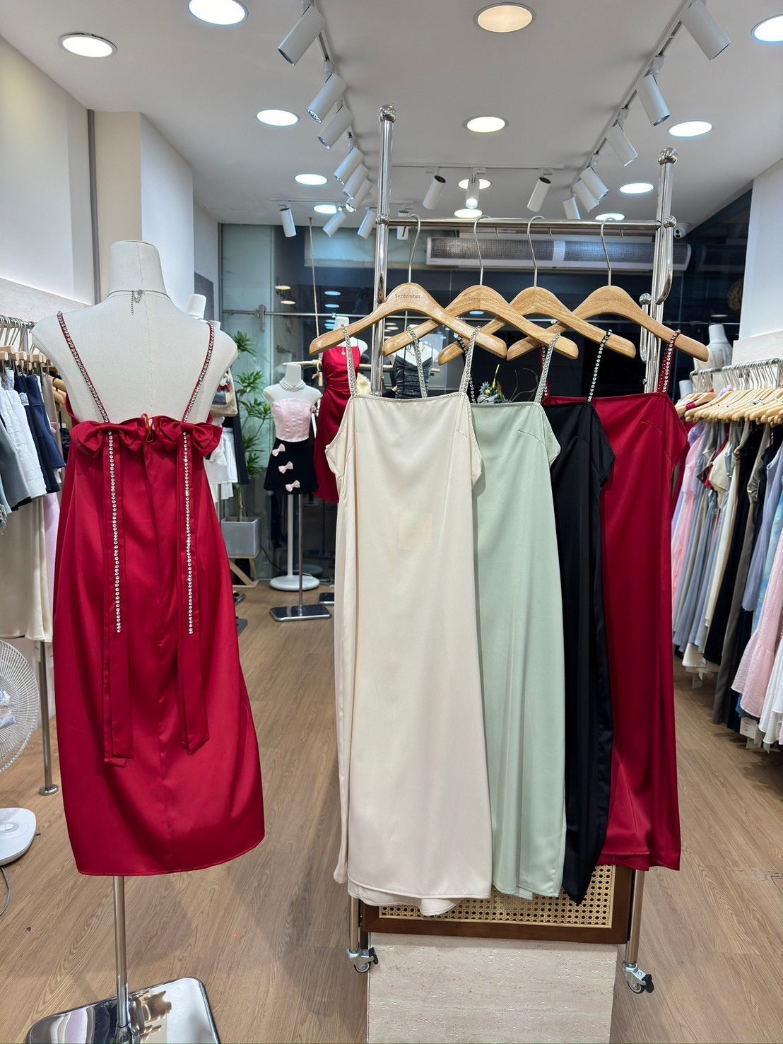 The Stone Bow Satin Dress is elegance in every detail. Made from rich satin, it features delicate stone embellishments on the straps, and a statement bow at the back. The perfect choice for weddings, cocktail nights, romantic dinners, or any occasion where you want to feel truly luxurious.